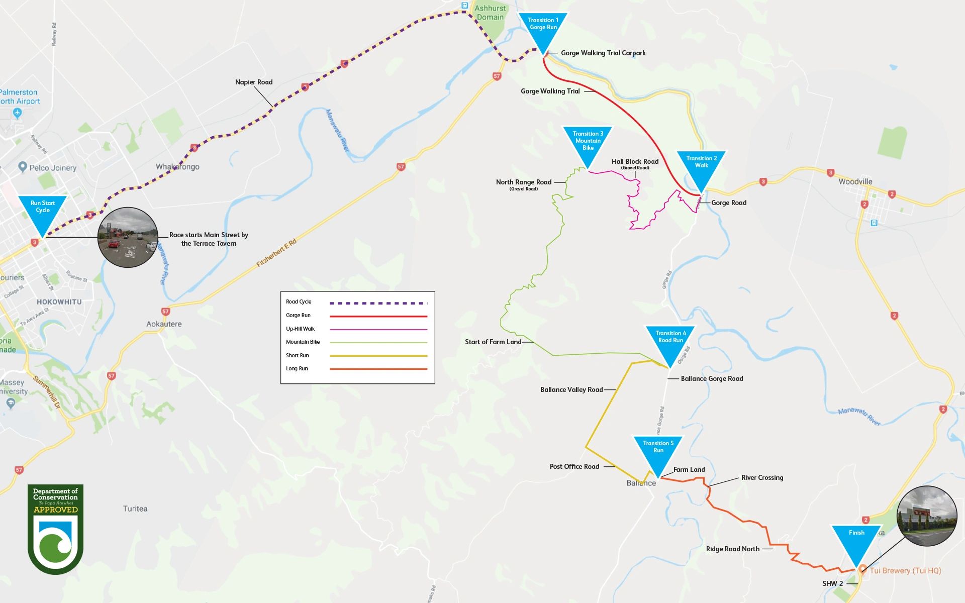 For the fitter competitors, a 11 km run up and over the Gorge track finishing at the Ballance Bridge car park.